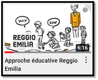 Cette pédagogie provenant d’Italie, encourage les enfants à explorer, à s’exprimer en utilisant leur créativité dans un environnement stimulant où la nature tient une place primordiale. Tout cela, avec le soutien et l’engagement du personnel éducateur, ainsi qu’avec l’étroite implication et la collaboration des familles. L’enfant est considéré comme un citoyen à part entière, actif, capable d’amener des réflexions et de la créativité. La documentation pédagogique est excessivement importante dans cette philosophie. La pédagogie Reggio Emilia a beaucoup influencé le document Comment apprend-on? Pédagogie de l’Ontario pour la petite enfance, alors on y retrouve beaucoup de similitudes.